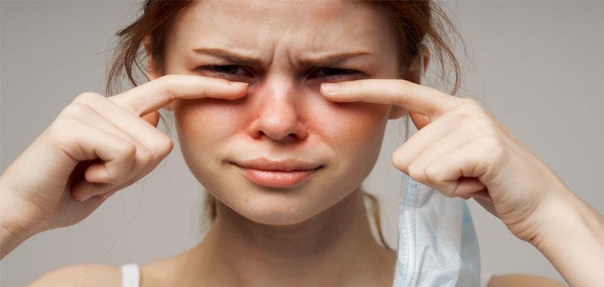 Diferentemente da conjuntivite infecciosa, a conjuntivite alérgica ocorre em função do contato dos olhos com ácaro ou pólen. Sua aparição é mais comum no período da primavera e se assemelha mais a uma simples irritação nos olhos, causando vermelhidão e coceira.