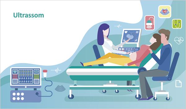 Ultrassom é o exame que utiliza ondas sonoras de altíssima frequência para obter imagens do interior do corpo. Ele difere do raio-X, da tomografia e da ressonância por ser seguro para embriões e fetos; por isso, um de seus principais usos é o acompanhamento da gestação.